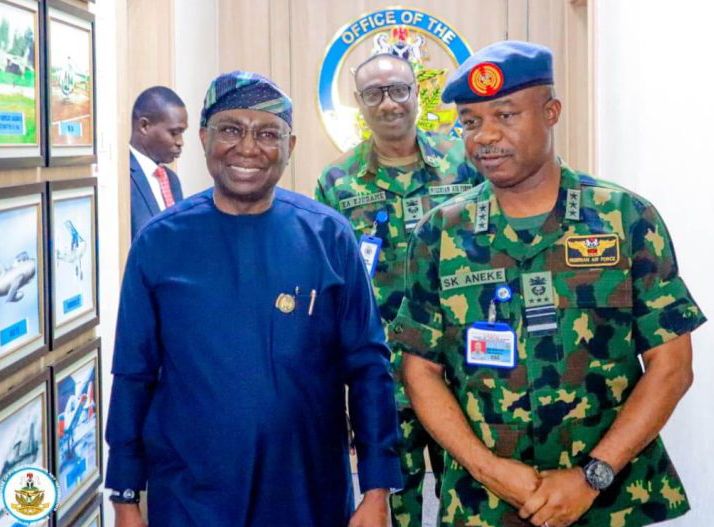 Dr. Mobereola said this during a courtesy visit to the Chief of Air Staff, Air Marshall S. K. Aneke at the NAF Headquarters in Abuja on Friday. He emphasized the role of the Air Force as a strategic partner in enhancing maritime security in Nigeria and sustaining the momentum of the Deep Blue Project’s success.